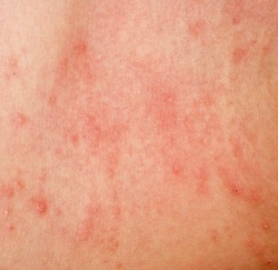 - Peau épaississante où apparaissent des éruptions cutanées