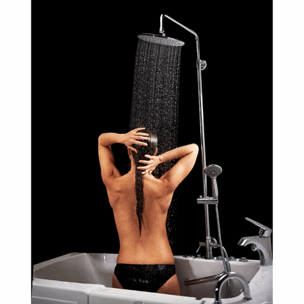 Des kits de douche de baignoire sans rendez-vous Ella sont installés en plus de votre robinet de baignoire existant. Ils ont une longue colonne de douche qui se fixe au mur avec des vis. La pomme de douche d’eau de pluie se fixe à l’extrémité de la colonne.